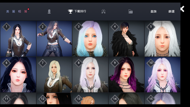 如果是手殘的玩家對於捏臉實在不行,建議也可以從美麗相簿去挑選自己喜歡的造型,這些造型都是線上玩家捏出來的排行,看著喜歡的話可以下載套用此模組~XD