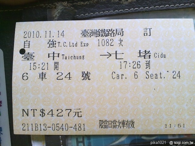 下圖是我搭錯車的莒光號...(結果我搭到平溪線= =)