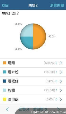 果然高科技就是不一樣,用App的話最後就直接看統計圖就好了,超方便的!而且我超討厭有些人明明點什麼還會忘記,所以我在一開始調查的時候就有放身份輸入題,要大家把名字填上,我就可以按選項進去看有誰選,這樣才不會亂掉