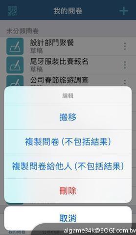 像我們部門因為常常趕設計圖、開會有的沒的,幾乎都會一起訂午餐、下午茶之類的,一開始我都傻傻的一份一份問卷做,後來我發現問卷可以直接複製!反正統計吃什麼的內容都大同小異,這樣超省時間!還不錯的是它有資料夾可以分類,不然問卷那麼多都要暈了