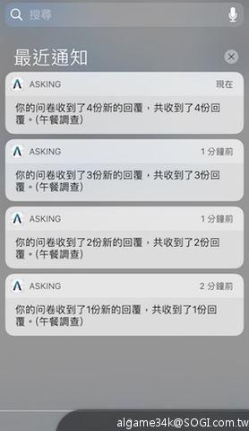 然後我有把提醒打開,就可以知道目前已經收到幾份回覆,因為我怕我會忘記要去看最後結果如何哈哈