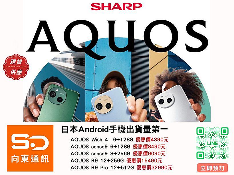 - AQUOS sense9 6+128G 原價12990元,現金優惠價8490元