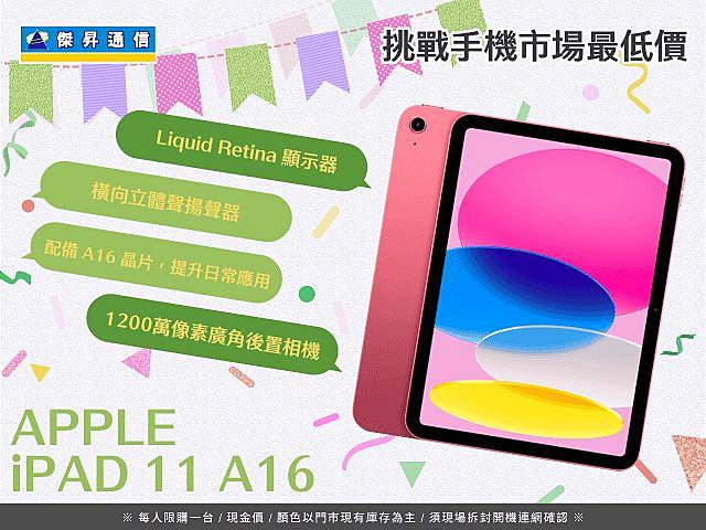 - Apple iPad 11 A16 Wi-Fi (128G) 不限色 $9,790