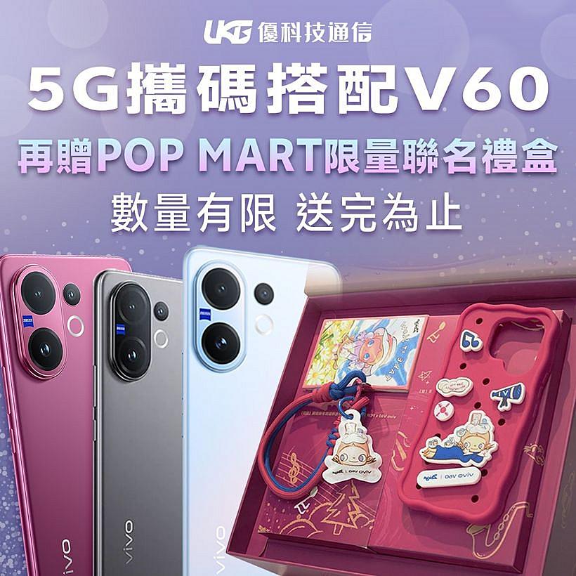 - POP MART 聯名禮盒贈送活動,僅限於門市辦理指定 5G 攜碼搭配 vivo V60 手機之客戶,本贈品為門市獨家限量現貨供應,數量有限送完為止,且此特殊優惠組合之資費細節與文章內所述之常態資費不同。