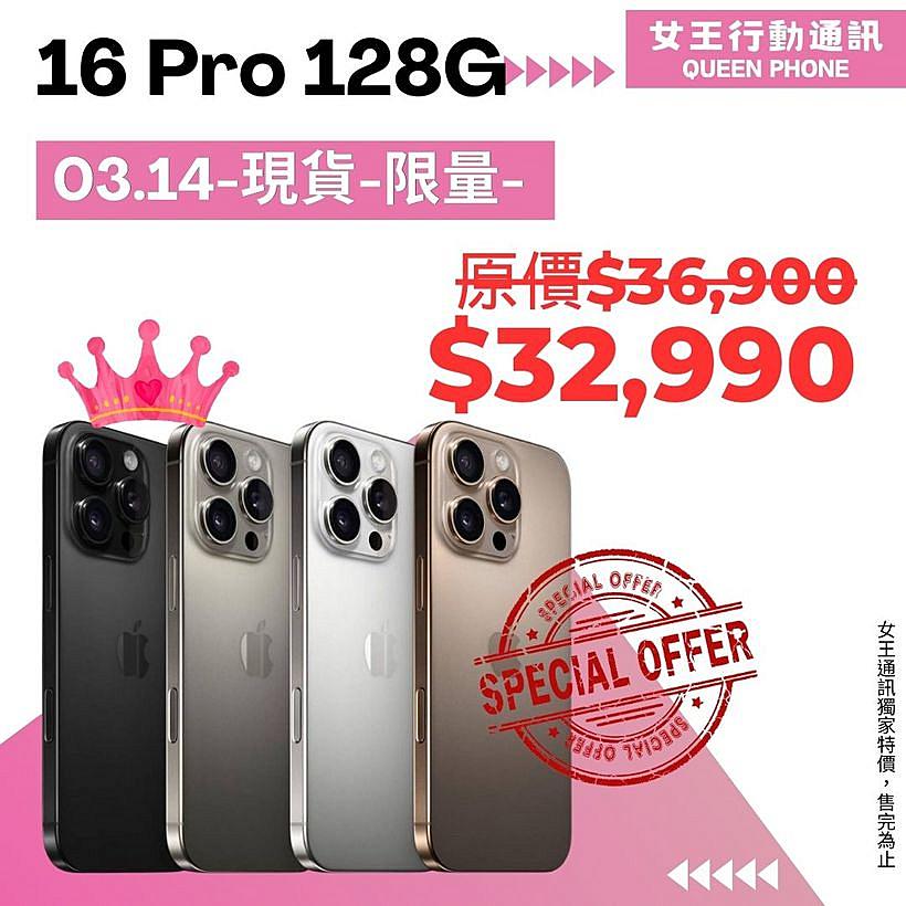 - Apple iPhone 16 Pro 128G 現金優惠價$32990