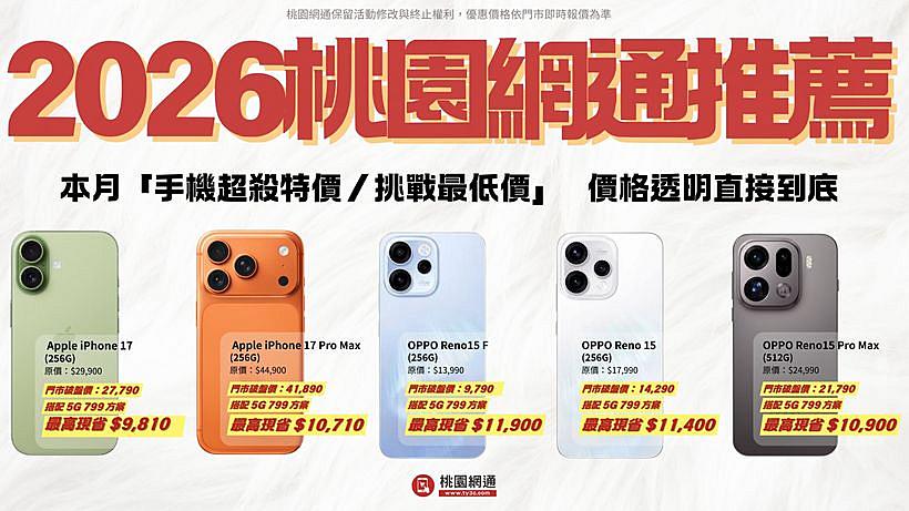 桃園網通強調,長期以來以在地服務與價格透明作為核心,提供可即時諮詢、可現場確認的購機環境。本月「手機超殺特價/挑戰最低價」實際內容,將依門市現場公告為準,建議有換機需求的消費者親自到店了解最新價格與現貨狀況。