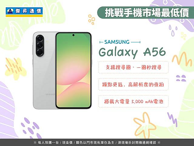 - 三星 A56 (12G/256G) 不限色 $12,990