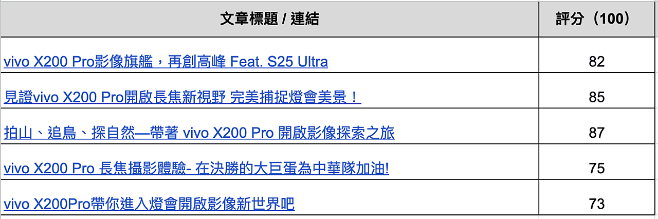 主辦單位欣賞五位體驗者精彩的 vivo X200 Pro 體驗文章後,已完成最終的評選啦!本次 vivo X200 Pro 體驗活動評分與獎項公布如下: