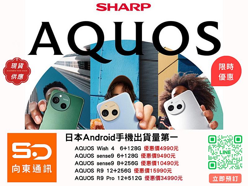 - AQUOS sense9 6+128G 原價12990元,現省3500元,現金優惠價9490元