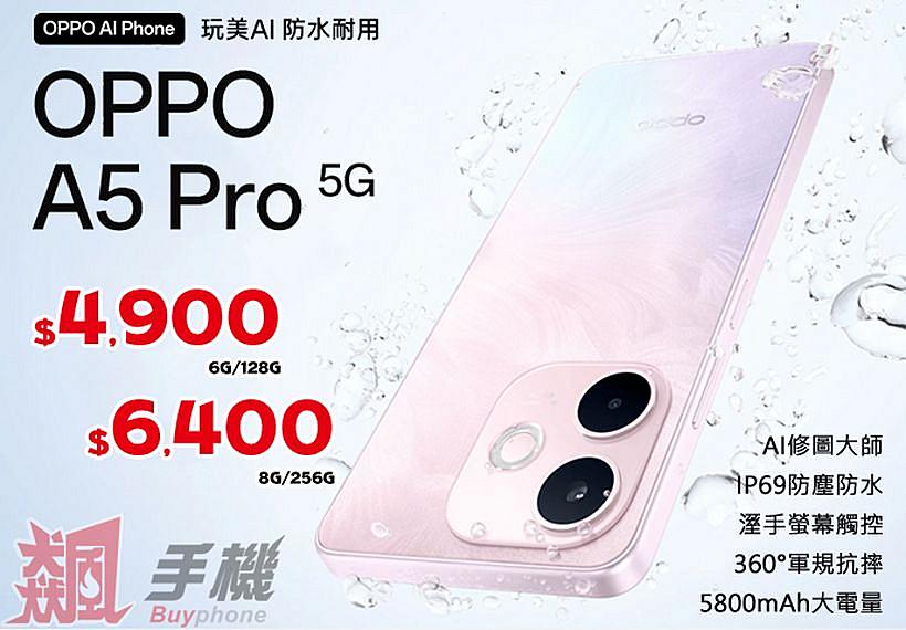 - A5 Pro 6/128GB $4900 ( 原價 $7990 現省 $3090)