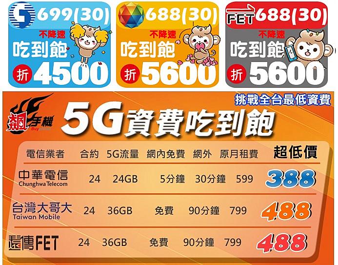 月租 688(30) → 現折 $5600新春紅包再加碼200(4G 吃到飽不降速)