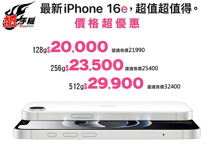 - Apple iPhone 16e 256G $23500 (原價 $25400 現省 $1900)