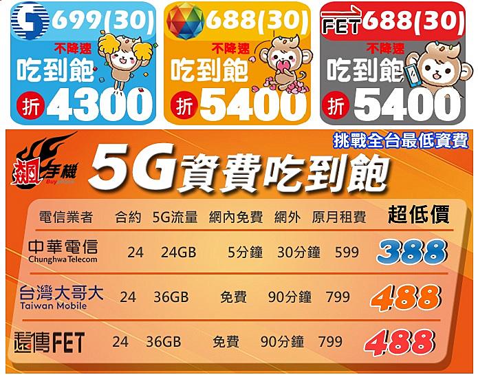 月租 688(30) → 現折 $5400(4G 吃到飽不降速)