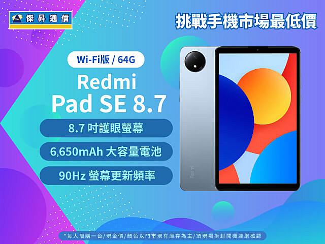 - Redmi Pad SE 8.7 Wi-Fi (4G/64G) 不限色 $2,990