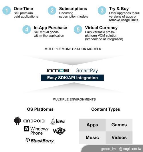 InMobi SmartPay 提供 Opera 使用者在全球一些特定的主要市場上,支付購買 InMobi 合作夥伴所出版的數位商品。兩家公司將致力於提供消費者、行動內容開發商、應用程式開發商,在手機瀏覽與線上交易市場上建立第三方營利機制。