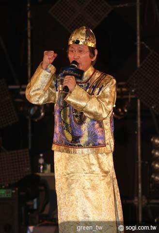 ▲執行長沈振來扮演美洲勇士,帶領美洲團隊演出「火山神諭」。