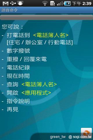 賽微語音命令:不需事先做任何訓練或錄音,即可聲控操作手機中的功能,例如聲控撥號給聯絡人、查詢現在時間、開啟應用程式等。除了精確的辨識能力外,還提供了多個可能辨識結果選單功能,使語音指令操作起來更便利。搭配 Android 2.2 版本支援藍牙聲控功能,讓使用者在行進或開車時能更確保安全。目前支援 Android 1.6 以上的版本。