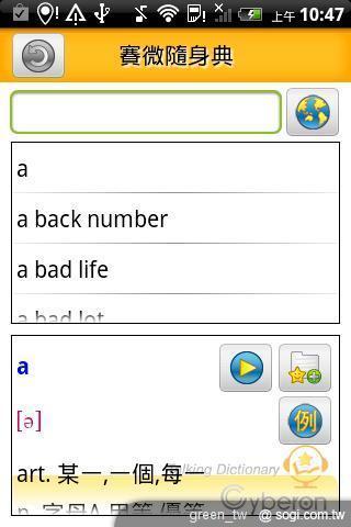賽微隨身典:收錄超過十一萬個實用的中、英字辭與片語,軟體容量小,不佔用大量資源,執行速度很快。是市面上佔用最少資源,卻提供最高品質的中英雙向發音字典。並且應用高科技的語音合成發音技術,提供有如真人般流暢自然的中、英文發音,所有功能皆無須連上網路即可完整使用,讓使用者享受最即時有效的英語行動學習。目前支援 iOS 3.0 以上的版本,及 Android 1.5 以上的版本。