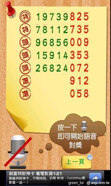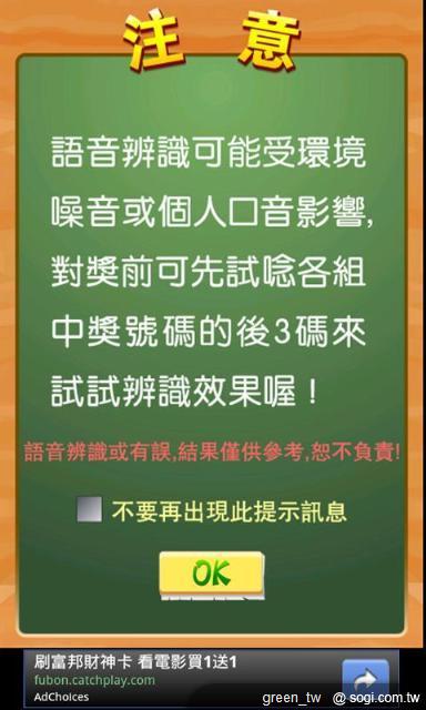 輕鬆來對獎:運用專業的語音辨識技術整合統一發票對獎功能開發的「輕鬆來對獎」,使用者僅需選擇要對獎的月份,以適當的音量及速度念出發票後三碼,搭配中獎音效,可立即知道是否中獎了,操作介面方便直覺簡單,使用者運用聲音辨識,可提高對獎速度及便利性。目前支援 iOS 3.1.2 以上的版本。