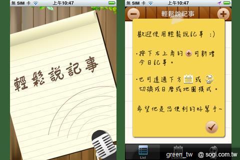 輕鬆說記事:延續了「賽微輕鬆說」產品的語音輸入功能,是一款操作容易,實用而簡單的記事軟體。結合方便的照片拍攝、文字記錄及地圖定位等功能,可以拿來寫簡短的照片日記,也可以當作備忘錄或行事曆使用,並可將記事透過郵件、Facebook、簡訊等方式分享給朋友。目前支援 iOS 3.2 以上的版本。
