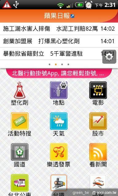 小 V 國道:為經常行駛高速道路的使用者所開發的貼心查詢軟體,使用者可於每個交流道間看到路況的相關資訊,除了目前行駛速度、施工狀況或是否有事故等訊息外,也提供了即時動態影像,讓使用者可隨時掌握最新的路況。除此之外還可查詢交流道附近的景點、餐廳、便利商店、小吃、加油站、拖吊場等等生活資訊。目前支援 Android 1.5 以上的版本。