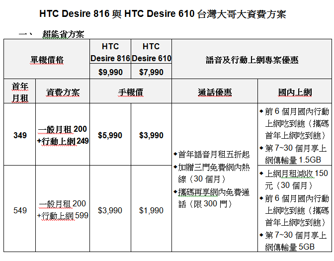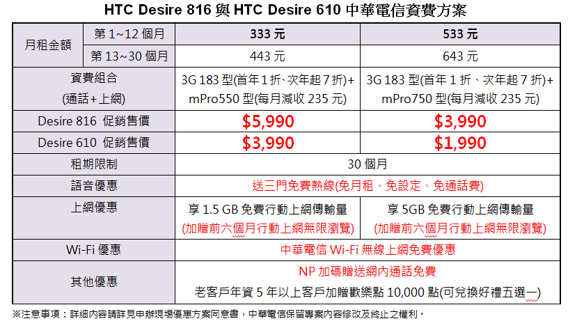 中華電信行動通信分公司總經理林國豐表示:「HTC Desire 系列自 2010 年推出以來,創下優異的銷售成績。此次中華電信與 HTC 再度共同推出 HTC Desire 816 與 HTC Desire 610,讓旗艦級的規格體驗在中階智慧型手機實現;HTC BoomSound 音響搭配雙前置立體揚聲器,也讓消費者徜徉於中華電信 Hami+ 音樂平台,享受身臨其境的好聲音。」