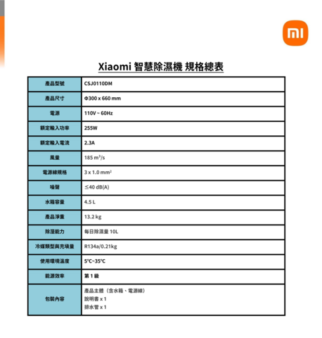 Xiaomi 智慧除濕機 一級能效標章 全年都給力的乾衣救星