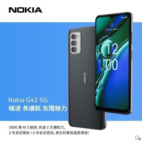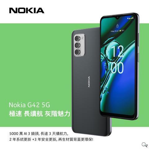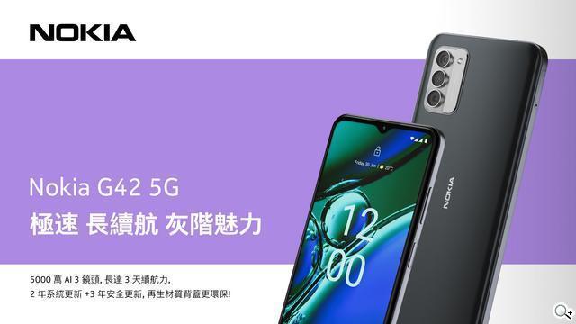【2023年08月17日,台北訊】Nokia手機總公司HMD Global今宣布Nokia G42 5G即將於8月22日正式開賣!外觀延續G系列既有的北歐美學設計風格,各項效能全面再升級,除了拍照成像細緻清晰、電池續航時間更長,並享有全亞太區、台灣市場唯一限定2年免費非人損保固維修,成為5G入門智慧生活最可靠的行動搭檔。致力於友善環境的HMD Global擔任業界領頭羊,攜手合作夥伴 iFixit[1]率先宣告自助維修的時代來臨,HMD Global 行銷長 Lars Silberbauer 表示:「Nokia G42 5G 不僅時尚美型,簡化產品結構以利拆解,已是Nokia智慧型機款的基本設計要素。」除了提供用戶更多元的維修管道,目標為延長手機使用壽命以降低電子廢棄物產生,落實ESG永續精神。本次新機超越同級、性價比神高,以極具競爭力、不到七千的親民價格,即可輕鬆入手環保又耐用的5G智慧型手機,愛地球綠色消費首選,還幫小資男女力抗通膨節省荷包!開學季即將到來,也特別推薦給尋求品質可靠耐用、精打細算的家長們,可謂是2023下半年最值得入手的全方位國民機種。Nokia G42 5G六大亮點一次大公開!
