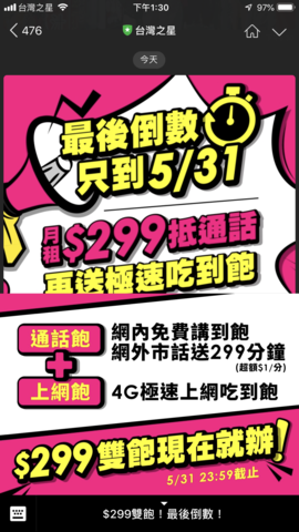 台星的299只到今天嗎?? 感覺還會再延長耶