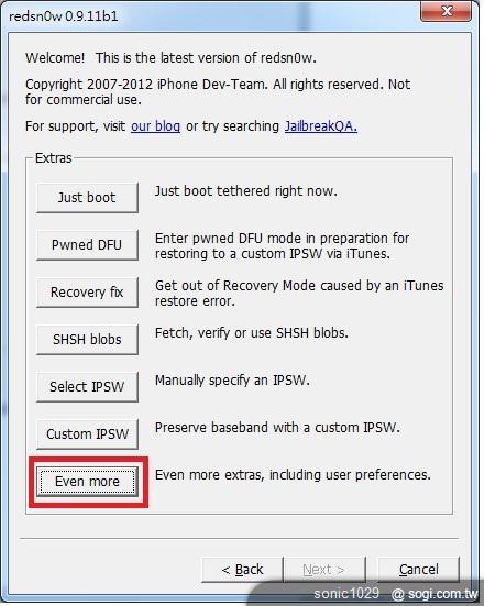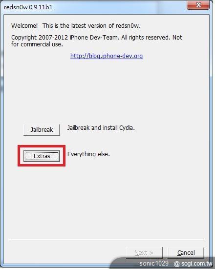 一、開啟redsn0w 0.9.11b1 點選 Extras