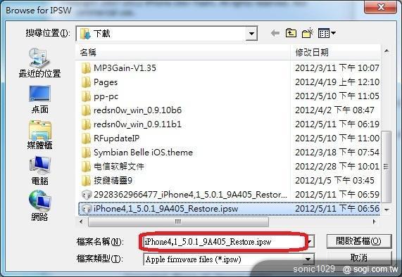 1. iOS 4S 5.0.1的韌體 iPhone4,1_5.0.1_9A405_Restore.ipaw