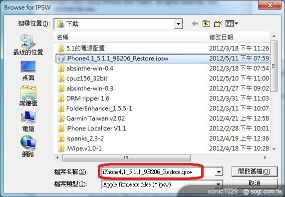 2. iOS 4S 5.1.1的韌體 iPhone4,1_5.1.1_9B206_Restore.ipsw