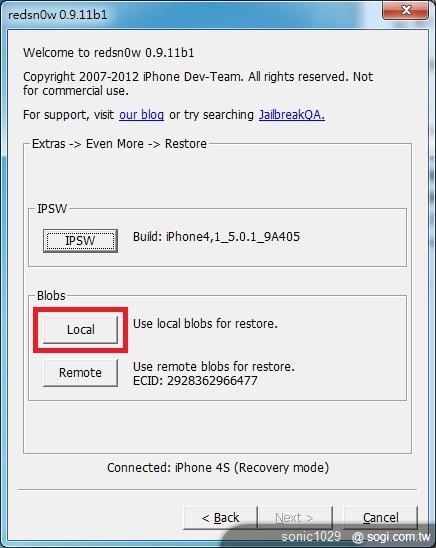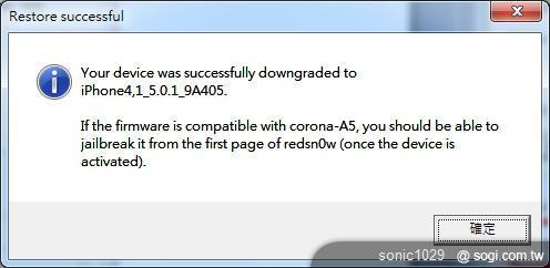 第一次選5.0.1 A405 (redsn0w 0.9.11b1 還未支援A406)