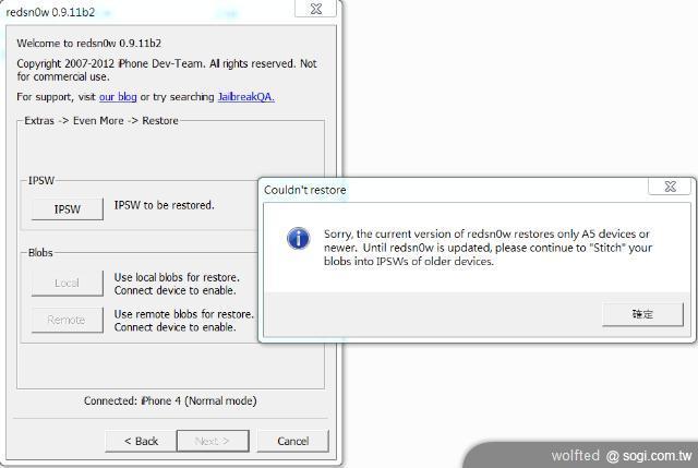 A4 CPU只能用iFaith或紅雪自製韌體配合ITUNES降刷