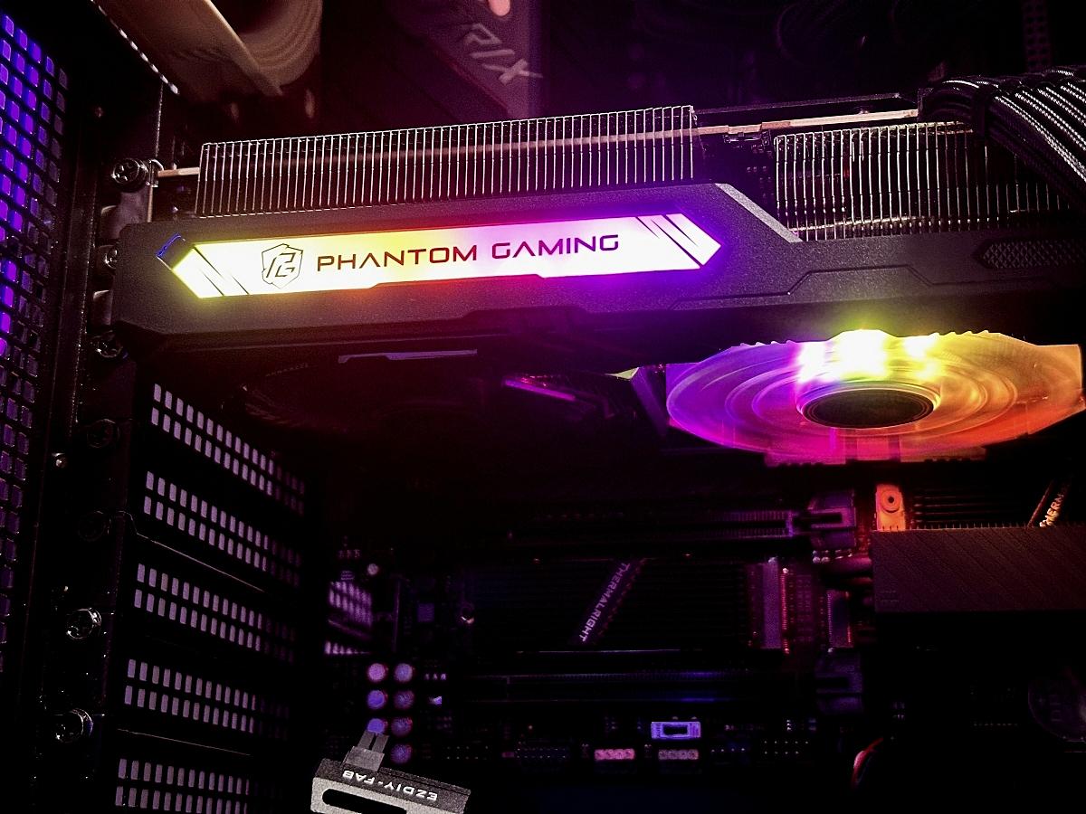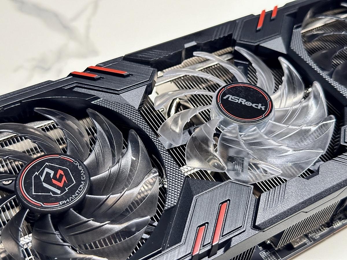 僅中間透明扇葉風扇帶有ARGB燈效,為ASRock近期Phantom系列顯示卡的設計風格。