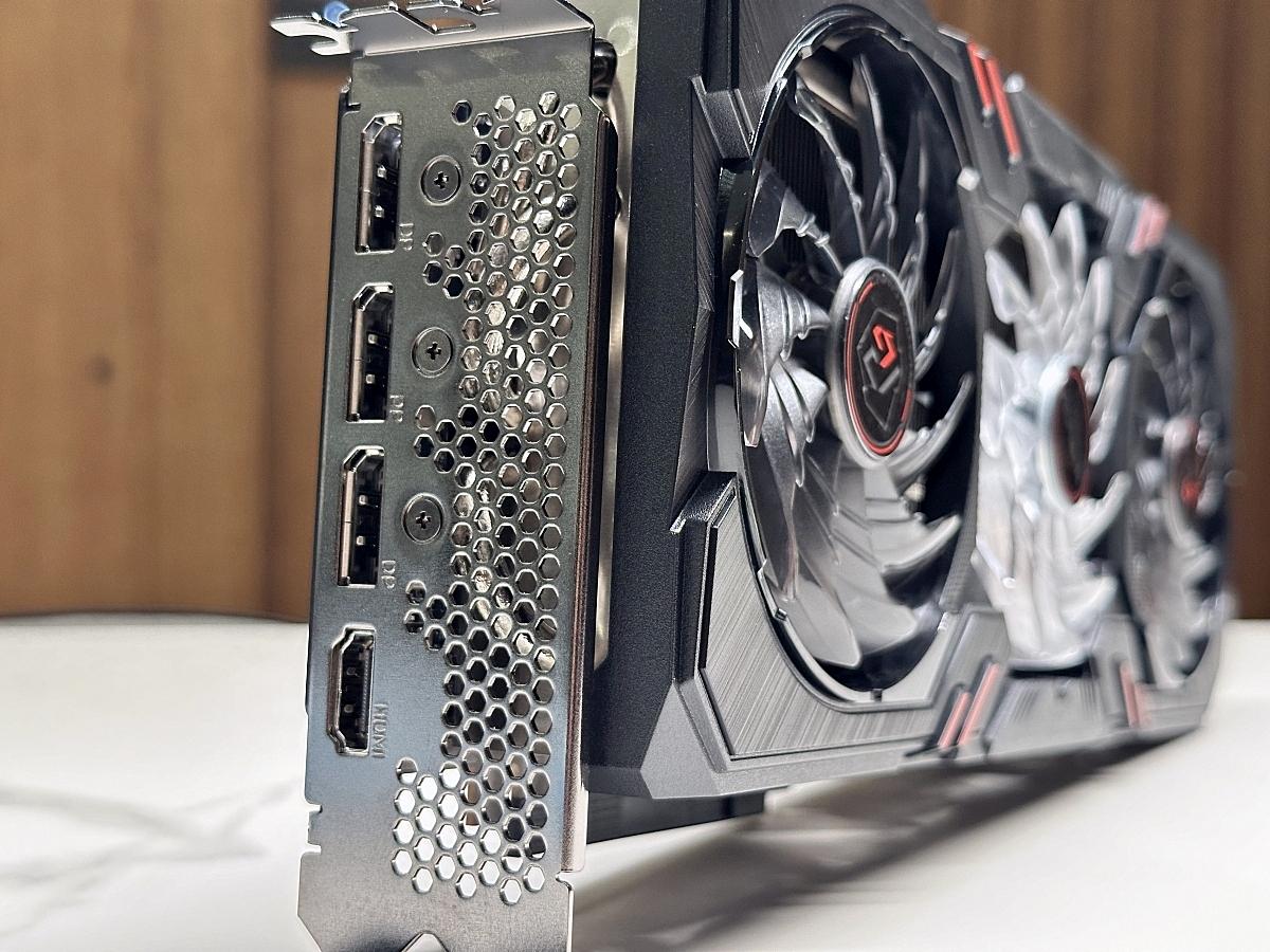 輸出接口提供3*DP 2.0、1*HDMI 2.1,搭配兩槽PCIE擋板。