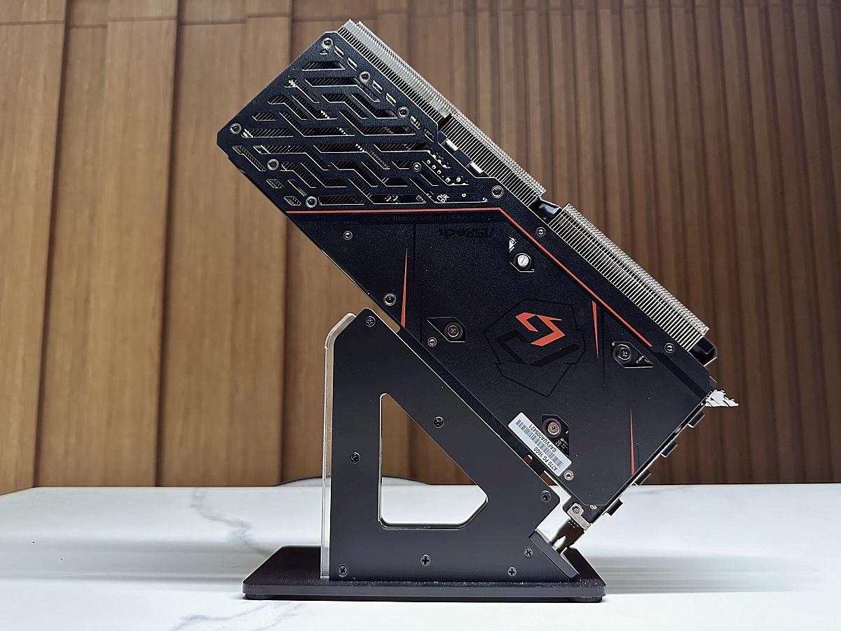 個人本次沒將顯示卡整個拆除,不過一樣依華擎官網介紹,Arc A770 Phantom使用優質的銅質底座以最大化GPU接觸面積,另外搭配高密度金屬焊接鰭片、奈米級散熱膏等措施可改善散熱能力。但...在2024年,除非搭配AI級散熱膏,不然個人心中可是一點波瀾都沒有。