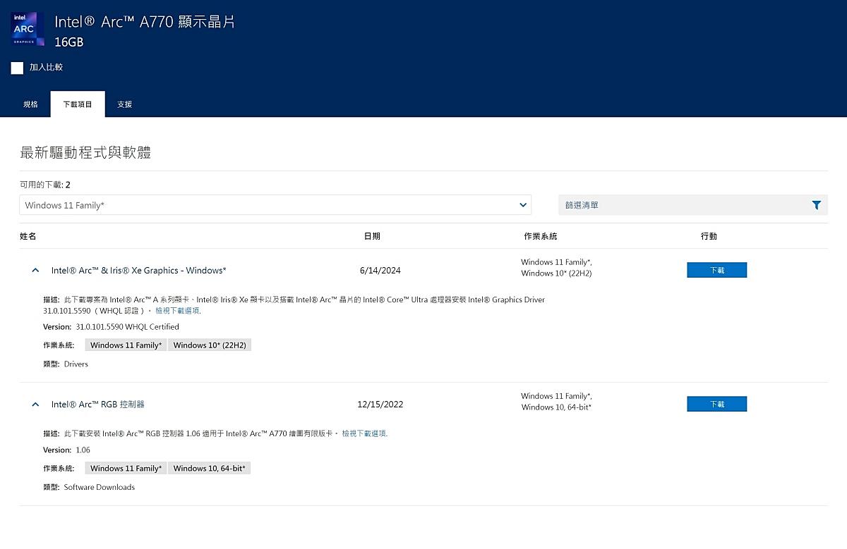 至intel官網下載驅動程式,下載日期2024/6/14的31.0.101.5590 WHQL版本。