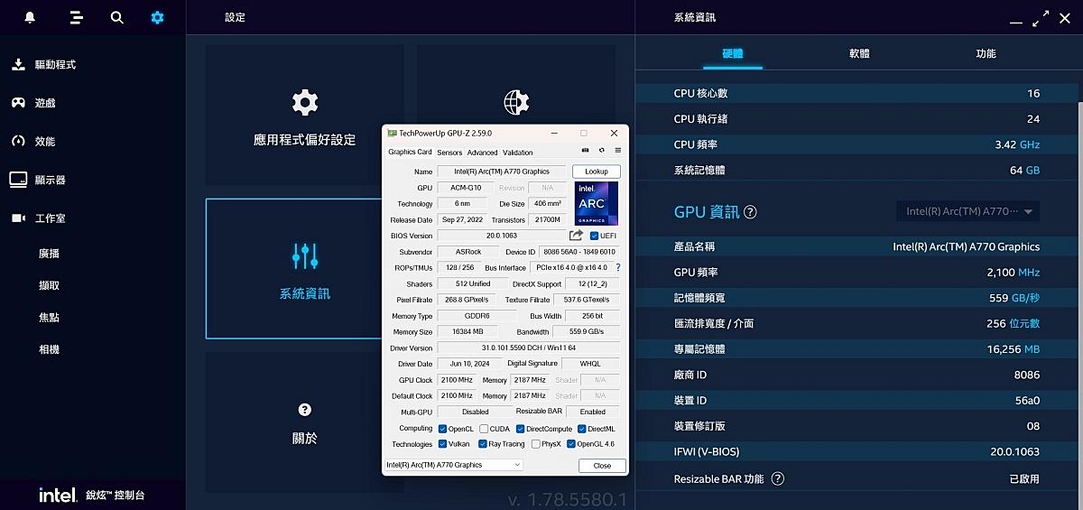 而ASRock Intel Arc A770 Phantom Gaming 16GB OC這張卡也能看出ASRock對於A770的重視,散熱規模、燈效功能等都以旗艦規格打造,運作時維持良好穩定的溫度及靜音效果,價格上經過調整也具有不錯的競爭力,如果對intel顯示卡有興趣可以參考。