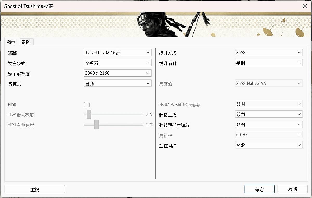 對馬戰鬼,啟動器能設置FPS提升方式為XeSS,依預設值選擇「平衡」。