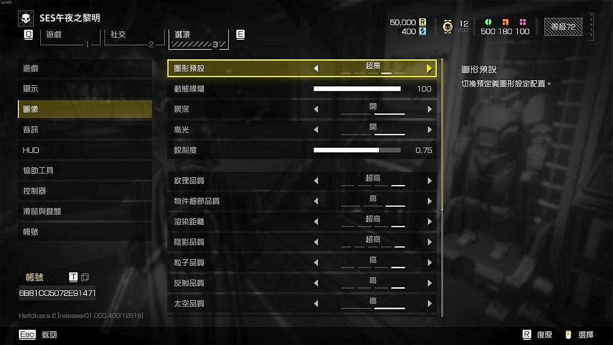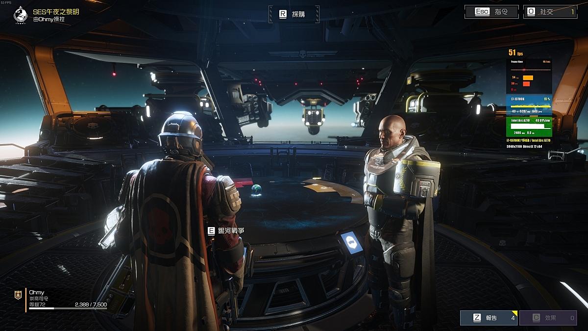 調整為超高品質後畫面明顯改善,但在艦橋時的FPS平均僅有51,最高54,最低36。