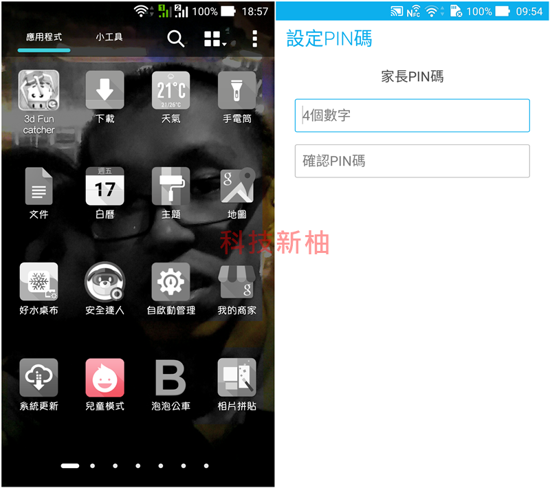 ▲ 兒童模式為內建 App 功能(圖左),初次使用需設定家長 PIN 碼(圖右)。