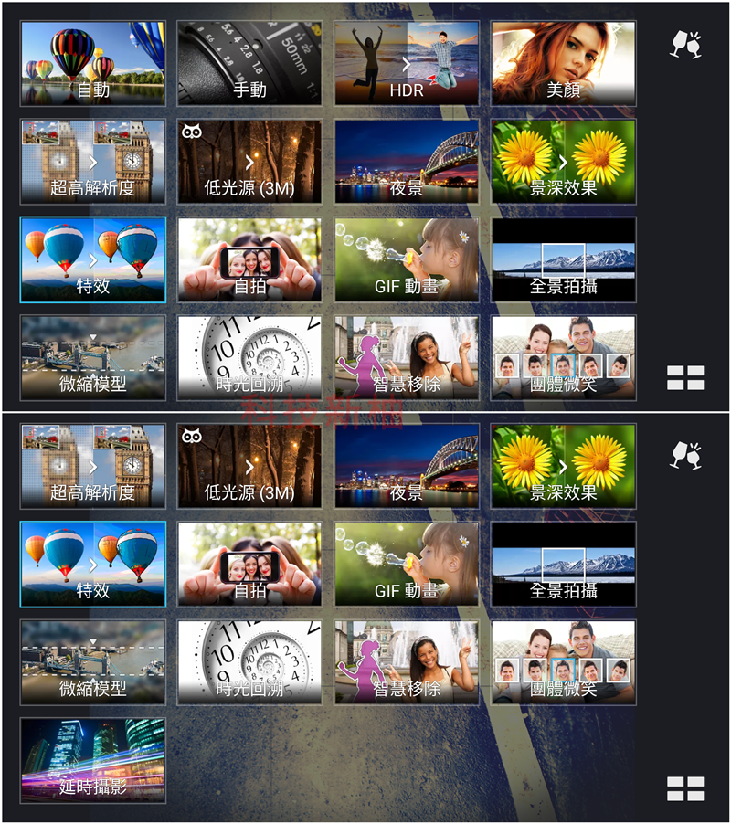 ▲ ASUS Zenfone 2 主鏡頭支援多種拍照模式,其中手動模式、超高解析度模式都是 Zenfone 2新增加的拍照模式。