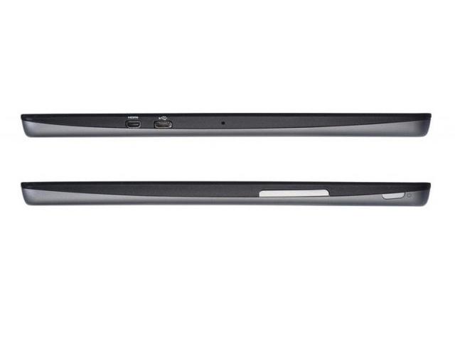 ▲Acer ICONIA Tab A110 機身底部從左到右設有一個 HDMI 高清視頻輸出接口、一個 USB 接口。機身頂部設有一個電源開關鍵與一個音量調節鍵。