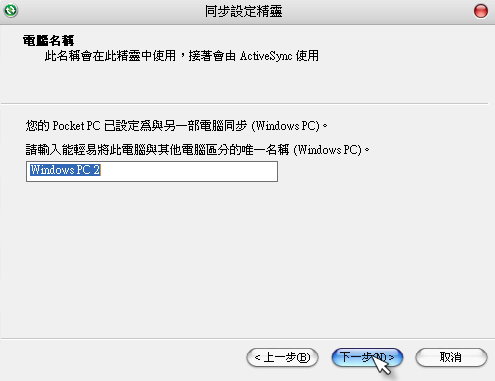 當系統偵測到I718後,就會出現同步設定精靈.圖(2)