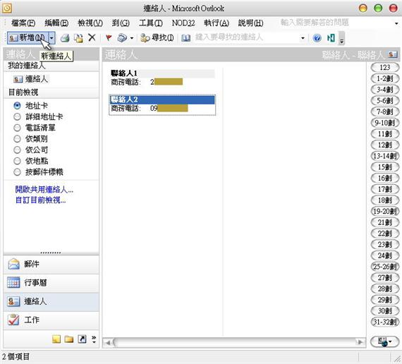 圖(7)您可以直接在Outlook中,新增任何行事曆,聯絡人,還有工作,然後選擇ActiveSync上的同步按鈕.