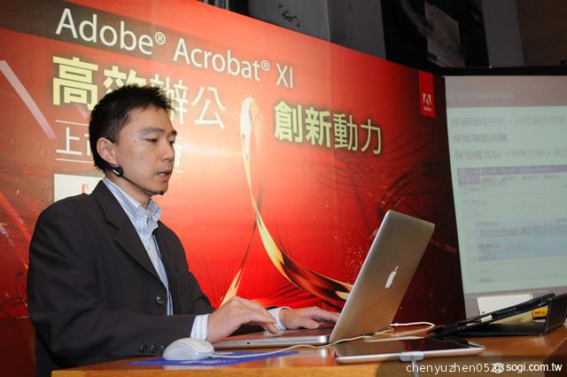 ▲Adobe銷售技術顧問夏榮慶示範Acrobat XI的新功能,包括:編輯PDF的文字與圖片、與Office的文件交換,以及跨裝置的整合應用。