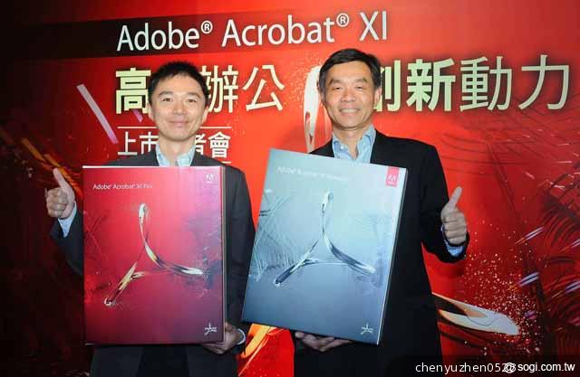 ▲Adobe台灣區總經理黃中平(右)Adobe銷售技術顧問夏榮慶(左)正式宣布新一代的Acrobat XI上市,為文件工作者提供一套更完整的文件作業解決方案。