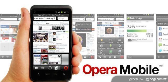 Opera Mobile 上的 Opera Turbo 更新:Opera Mobile上的 Opera Turbo 功能更新,讓你在行動上網的手機網路上,充分利用 Opera Turbo 的數據節量功能。