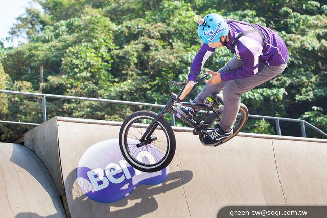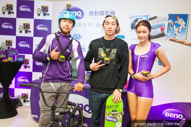 極限運動新視界!BenQ 特別邀請台灣極限運動新秀板界一哥柯家恩與 BMX 競技單車潛力選手羅稚遠,以速度感與華麗炫技體現 BenQ SP1 運動攝影機所記錄下的流暢畫面。四歲即開始征戰滑板賽事的柯家恩,在親身體驗後表示,BenQ SP1 運動攝影機便利的「腕帶遙控器」,可輕鬆遙控、邊錄邊拍最吸引他,在高低起伏不同地型練習特技時,透過動態畫面同步記錄來確認動作的精準度,隨時檢視、修正角度,非常方便。
